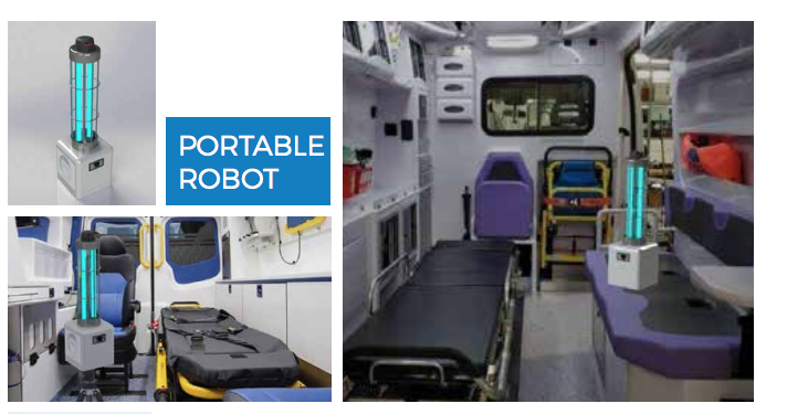 The UV disinfection robots has been clinically proven to eliminate bacteria and viruses and effectively sanitize ambulances, bathrooms, lockers, garages, restroom stalls, kitchens and even offices.